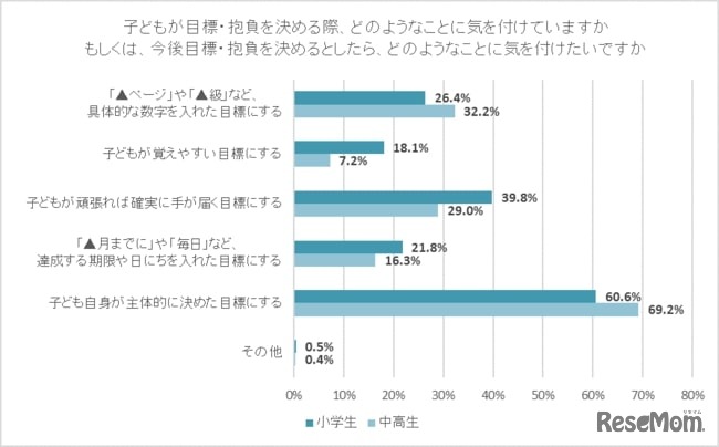 子供が目標・抱負を決める際、どのようなことに気を付けていますか。または、今後子供が目標・抱負を決めるとしたらどのようなことに気を付けたいですか。