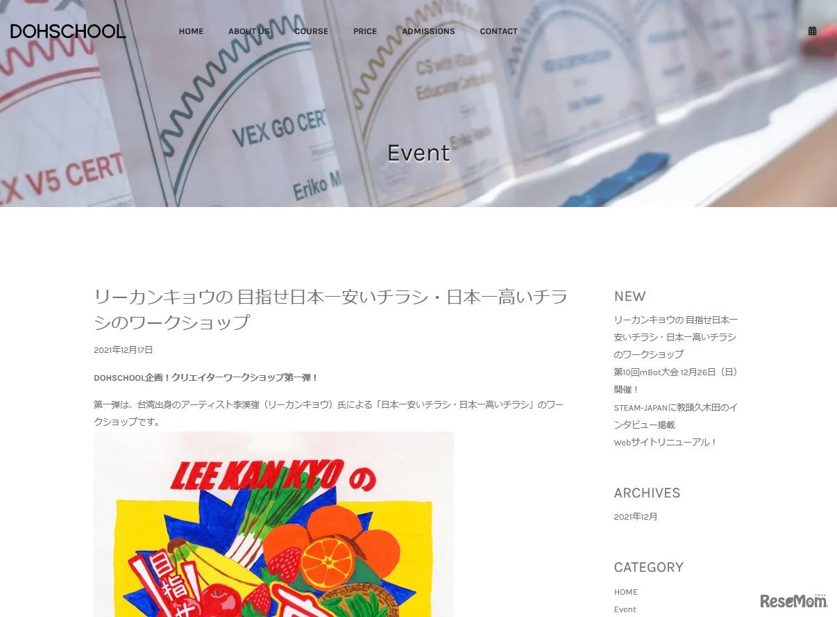 DOHSCHOOLは2022年1月23日、30日にクリエイターワークショップ第一弾として、台湾出身のアーティスト李漢強(リーカンキョウ)氏による「日本一安いチラシ・日本一高いチラシ」を開催する。対象は、小学生以上の親子。