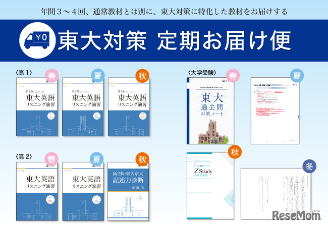 Z会は、「Z会の通信教育」高1生~高3・高卒生向けの2022年度申込みを2021年11月29日より開始した。開講月である3月より東大対策講座を申し込んだ人に、通常教材とは別に追加受講費なしで、年3~4回「東大対策定期お届け便」を用意する。