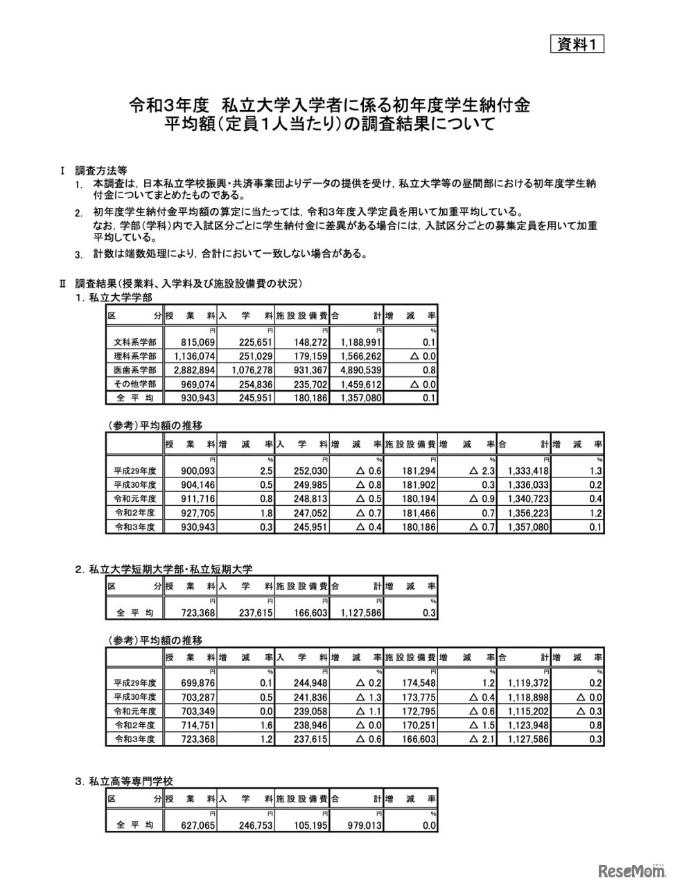 文部科学省は2021年12月24日、私立大学等の2021年度(令和3年度)入学者に係る学生納付金等調査結果を公表した。2021年度の私立大学(学部)の初年度学生納付金は135万7,080円。前年度(2020年度)より857円(0.1%)増となった。