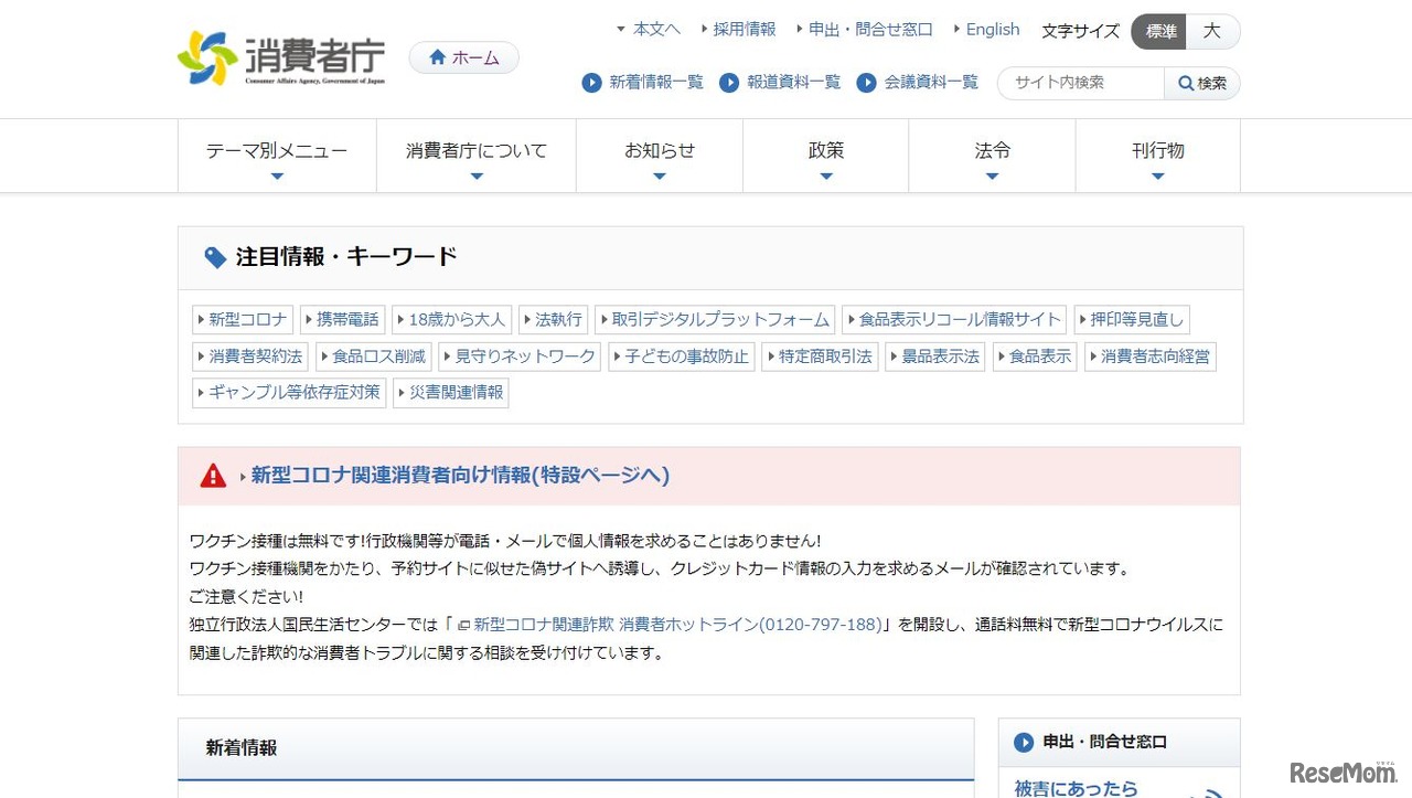 消費者庁は2021年から2022年にかけての年末年始を前に、「子供の思わぬアルコールの摂取」について、急性アルコール中毒等の事故を防ぐため注意を呼び掛けている。