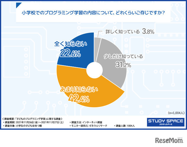 キッズ向けプログラミングを運営するToLicoは、小学生の子供をもつ親を対象に「子供のプログラミング学習」に関する調査を実施した。プログラミングが子供の将来に役立つと考える割合が8割にのぼった一方で、65%は小学校での学習内容を把握していないようすもうかがえた。