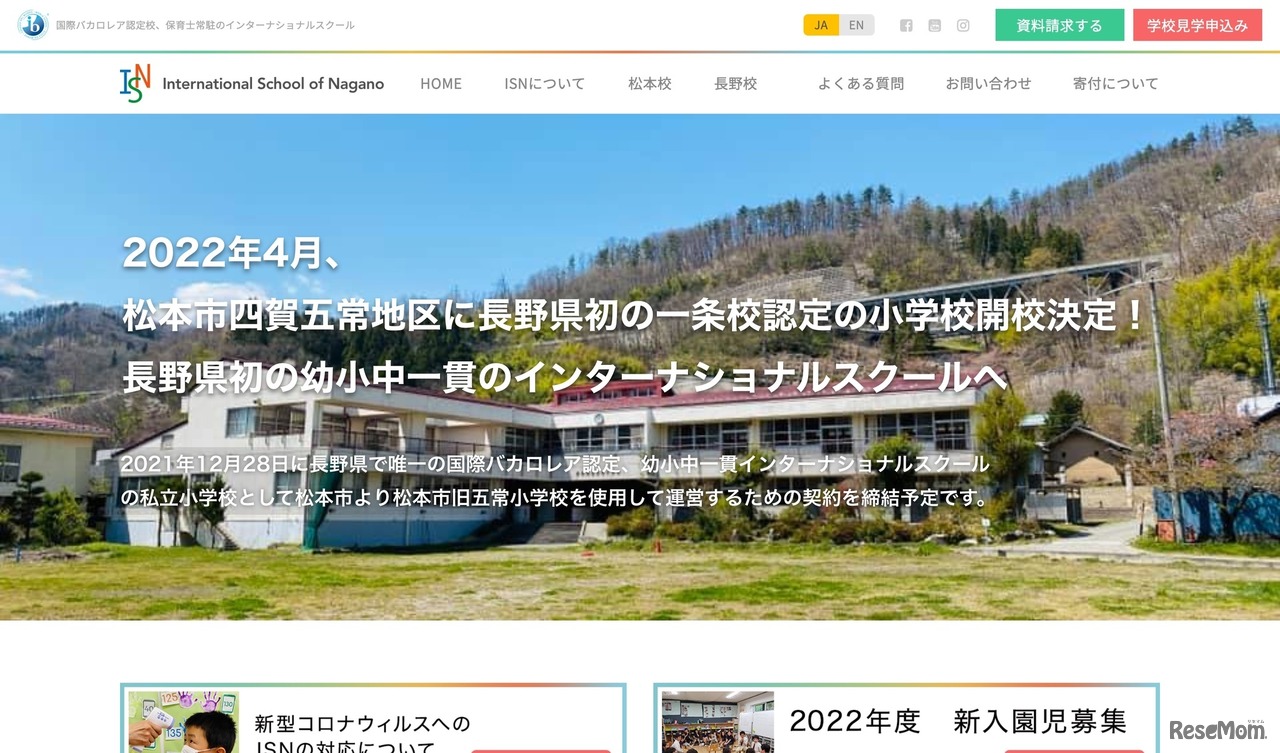 インターナショナルスクールオブ長野(ISN)は2021年12月28日、長野県唯一の国際バカロレア認定、幼小中一貫インターナショナルスクールの私立小学校として認可の通知を受けた。2022年4月に開校する。