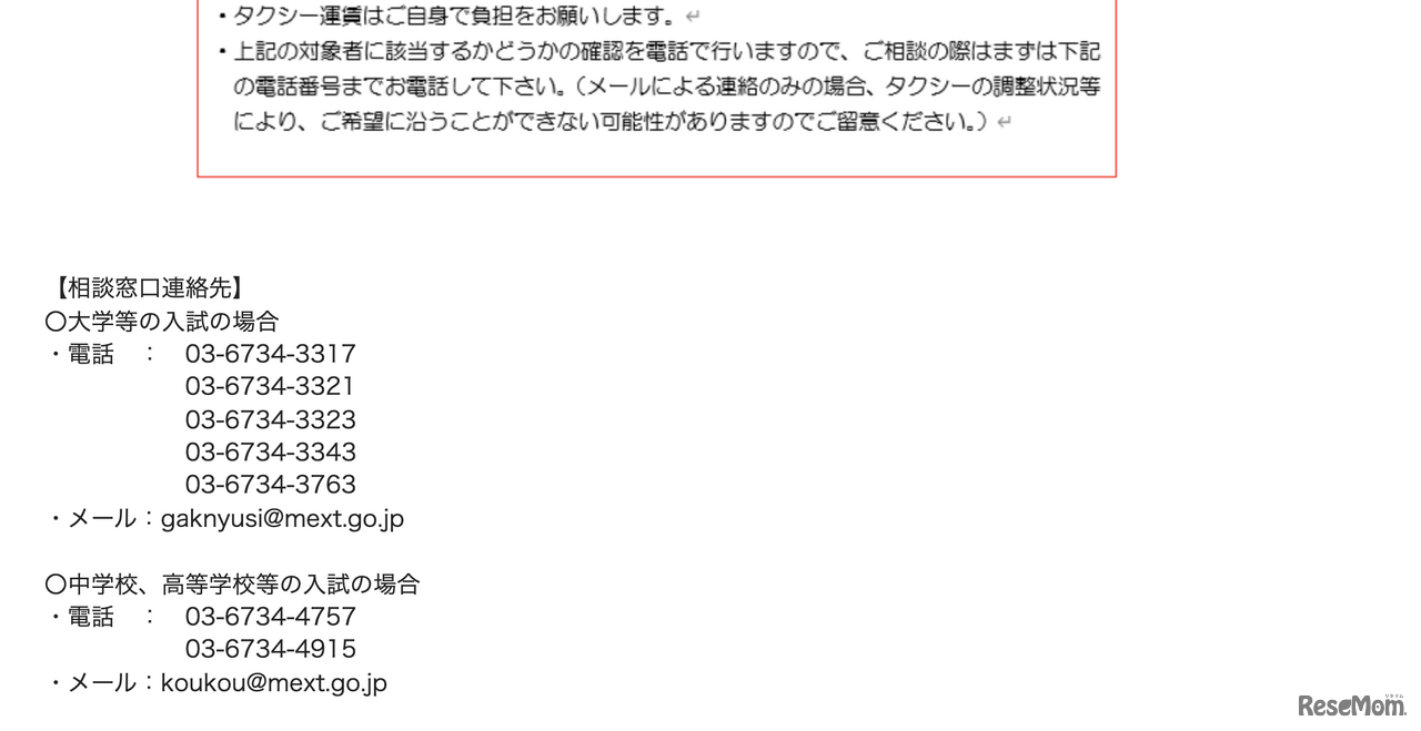 文部科学省は2022年1月11日、「無症状の濃厚接触者の受験者のうちタクシー、ハイヤー、海上タクシーでの移動を希望する皆様へ」を公開した。タクシー、ハイヤー、海上タクシーの利用方法や相談窓口の情報が記載されている。