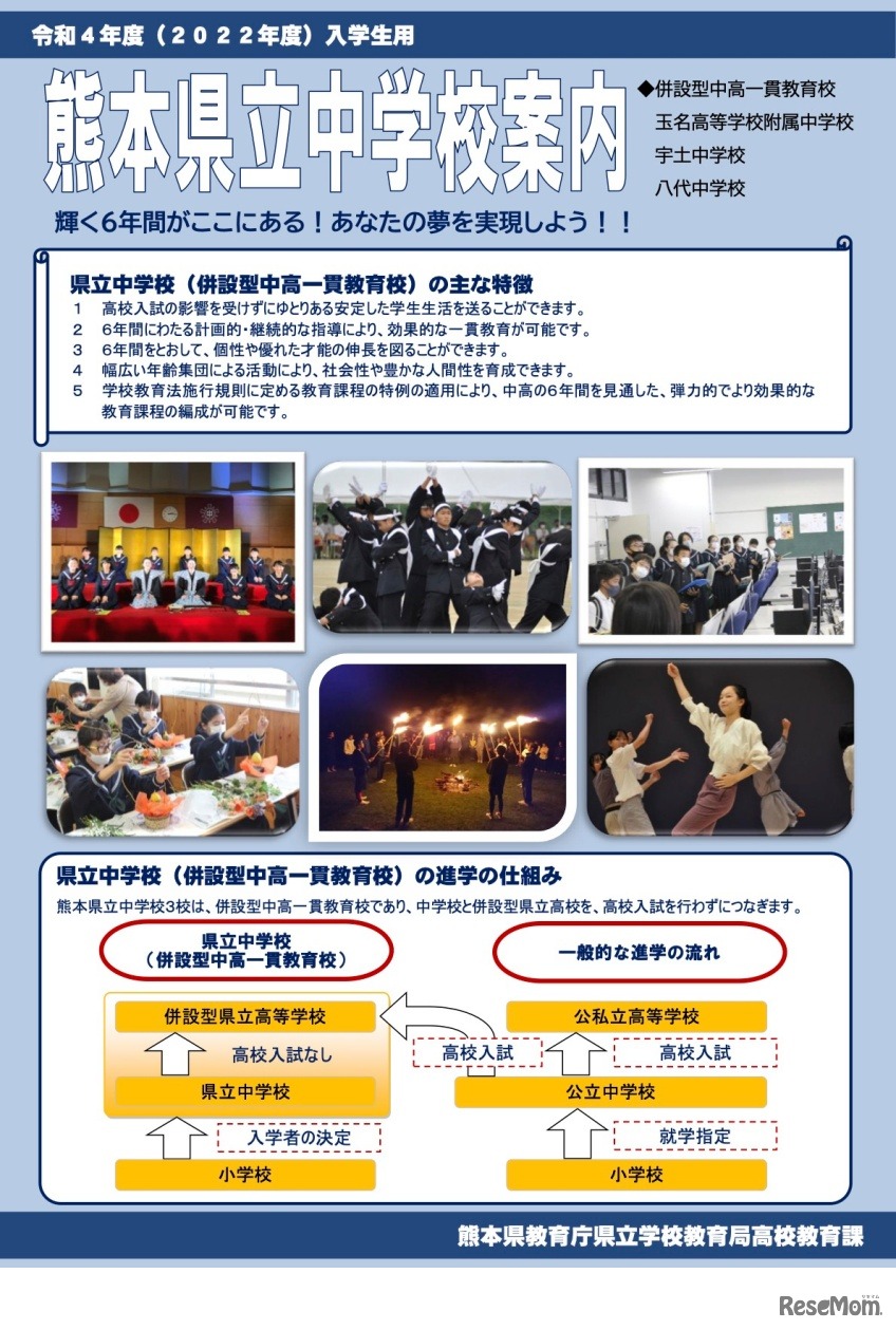 熊本県教育委員会は2022年1月9日、同日に行われた2022年度熊本県立中学校入学者選抜における受検者数について公表した。募集を行った3校の募集定員210人に対し、受検者数は382人で受検倍率は1.82倍。もっとも受検倍率が高かった玉名高等学校附属中学校は2.00倍となった。