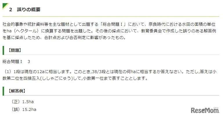 仙台市教育局は2022年1月20日、仙台市立青陵中等教育学校で採点ミスがあり、3人に本来合格とすべきところを不合格としていたと発表した。「総合問題I」において、誤りのある解答をもとに採点し、合計点および合否判定に影響があったと公表した。