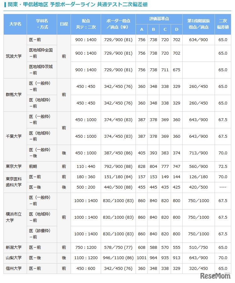 河合塾が発信する医学部入試・受験対策情報サイト「河合塾 医進塾」は2022年1月21日、大学入学共通テスト(以下、共通テスト)の医学部予想難易度(ボーダーライン)を公表した。東京大学(理科三類)のボーダー得点は792点、ボーダー得点率は88%。