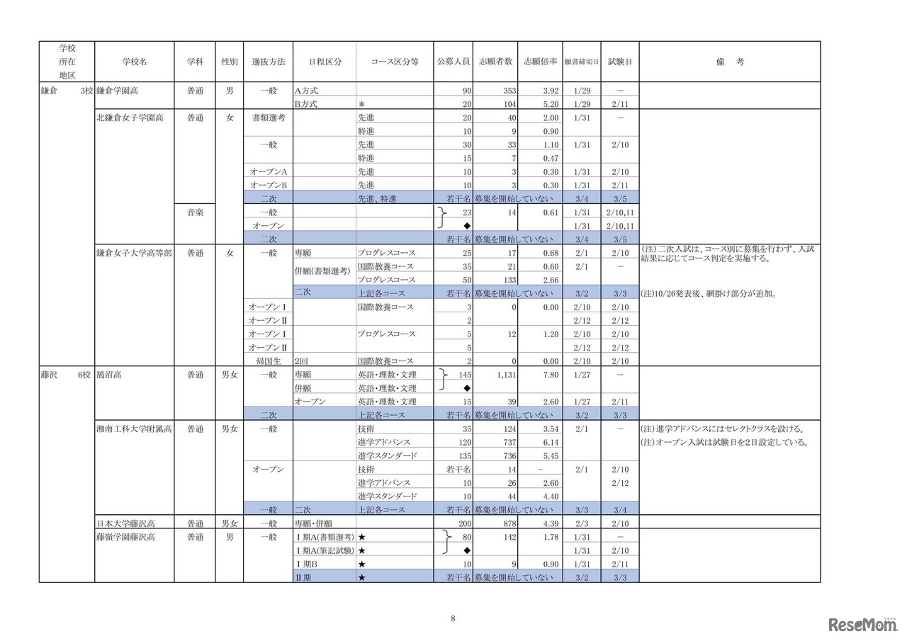 【高校受験2022】神奈川県私立高の志願状況(1/31時点)慶應(普通)3.97倍 8枚目の写真・画像