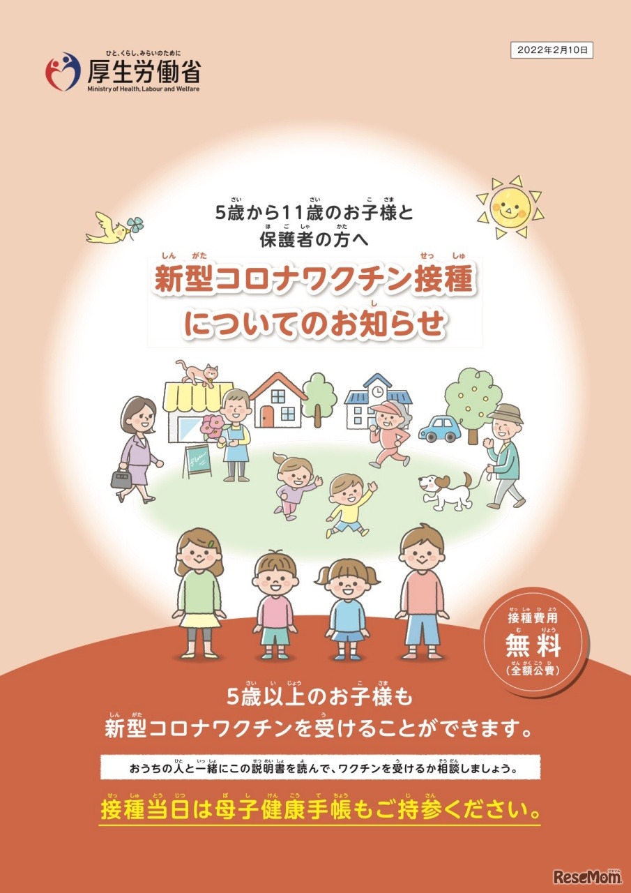 画像出典:厚生労働省 新型コロナワクチン接種についてのお知らせ(5~11歳のお子様と保護者の方へ)
