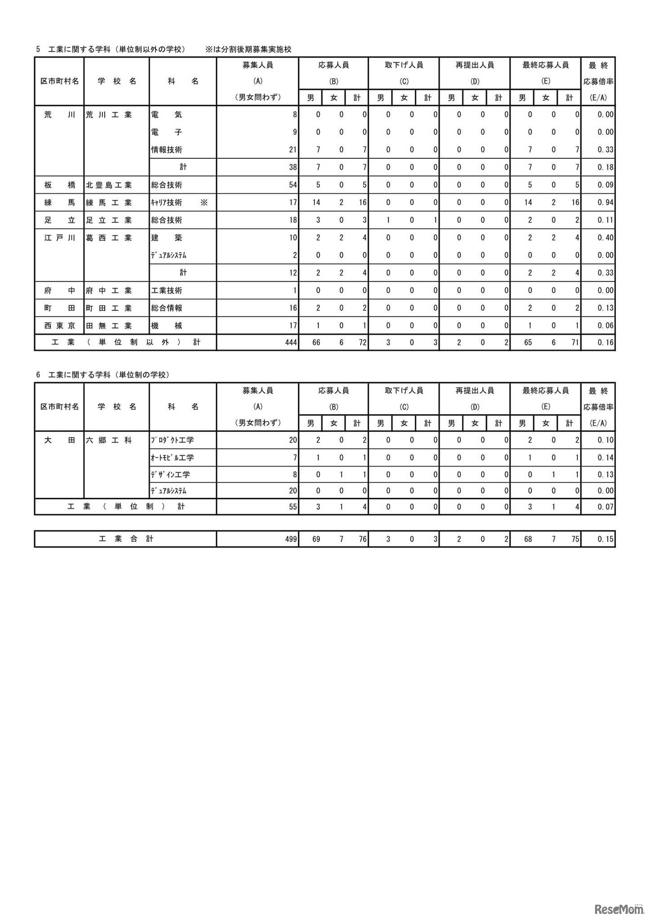 画像提供:東京都 入学者選抜最終応募状況(分割後期募集・全日制等第2次募集(取下げ再提出後))専門学科
