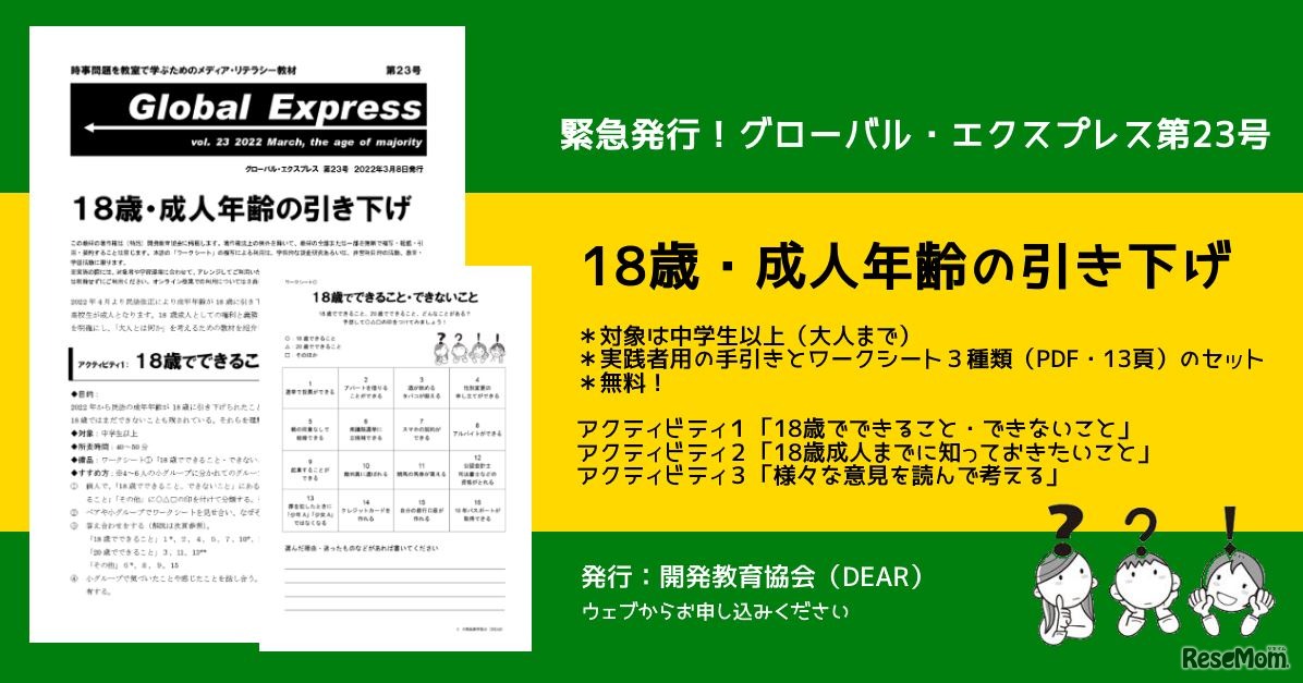開発教育協会(DEAR)は2022年3月9日、ワークショップ教材「18歳・成人年齢の引き下げ」を発行した。対象は中学生以上。実践者用の手引きとワークシートがセットになっており、Webサイトから事前申込のうえ、無料でダウンロードして利用できる。