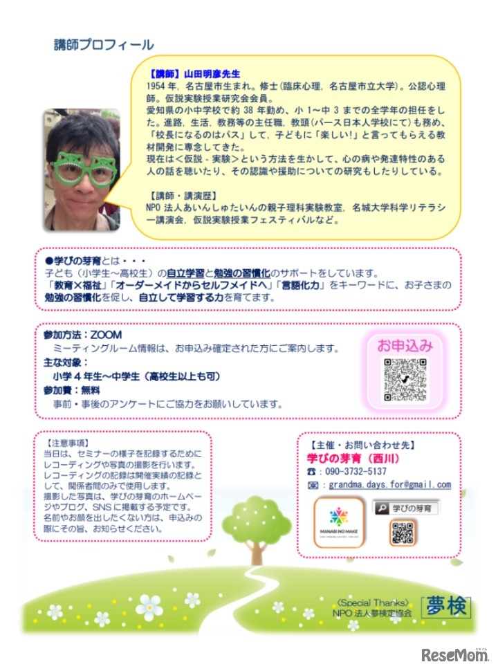学びの芽育は2022年3月27日、オンラインイベント子供科学セミナー「科学の発想からえがく『将来の自分』」を開催する。イギリスから参加の10歳の男の子が、スペシャルプレゼンターを務める。参加費無料。