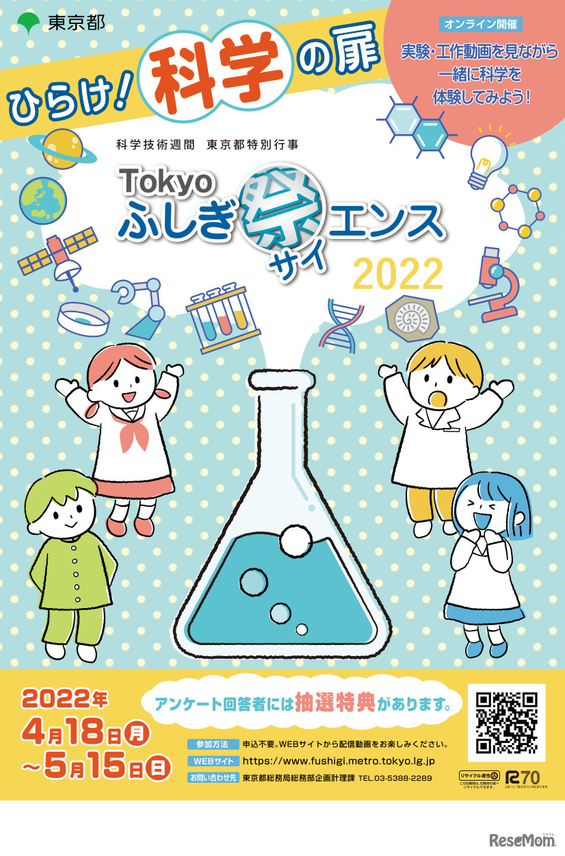 東京都は2022年4月18日~5月15日、科学技術週間の特別行事「Tokyoふしぎ祭(サイ)エンス2022」を開催し、実験や工作等のサイエンス動画をオンライン配信する。対象はおもにに小・中学生。申込不要、視聴無料。