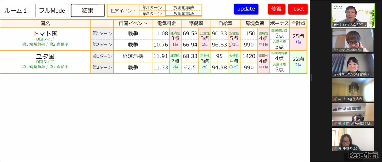J-POWER「エコ×エネ体験ツアー火力学生編@オンライン」(2022年2月24日~26日)ライブ映像より 偶然にも同じ国タイプとなった2チームは接戦に