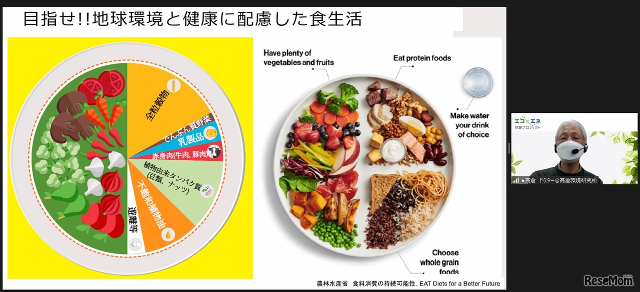J-POWER「エコ×エネ体験ツアー火力学生編@オンライン」(2022年2月24日~26日)ライブ映像より ドクターからはCO2をエネルギーだけの問題ではなく「食」にまで広げた視点が紹介された