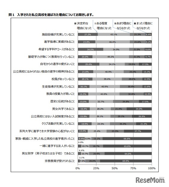 画像出典:大阪府教育庁私学課 入学した私立高校を選んだ理由