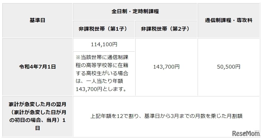 東京都は2022年4月22日、保護者の失職等の家計急変により収入が激減した世帯を対象とした、奨学のための給付金の支給について公表した。申請受付は2022年(令和4年)7月開始予定。
