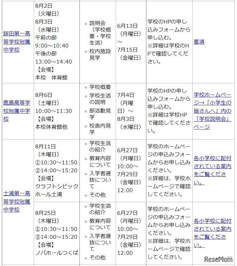 茨城県教育委員会は、2022年度(令和4年度)県立中学校および県立中等教育学校の説明会予定一覧を公開した。説明会は7月~9月に実施され、学校概要の説明や在校生による学校生活等に関する説明が行われる。各学校のWebサイトから事前に申し込む。