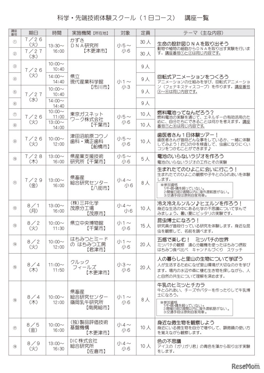 千葉県教育委員会は2022年6月11日、7月~8月にかけて実施する小中高生を対象とした「千葉県夢チャレンジ体験スクール」の参加者募集を開始した。さまざまな就業体験や科学・先端技術体験等、職業に必要な資質や能力等について学ぶ機会を提供する。応募締切は7月3日。