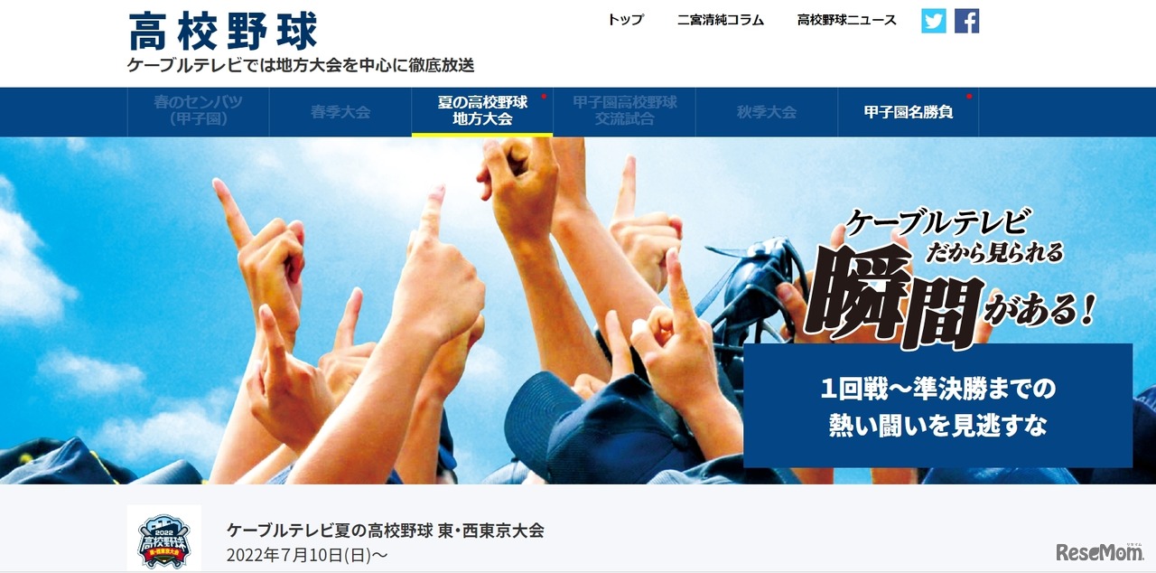 J:COM等、東京都内ケーブルテレビ9社は「第104回全国高等学校野球選手権大会 東・西東京大会」を生中継することを発表した。2022年6月18日の抽選会から準決勝まで、全力で野球を楽しむ高校球児たちの姿を届ける。