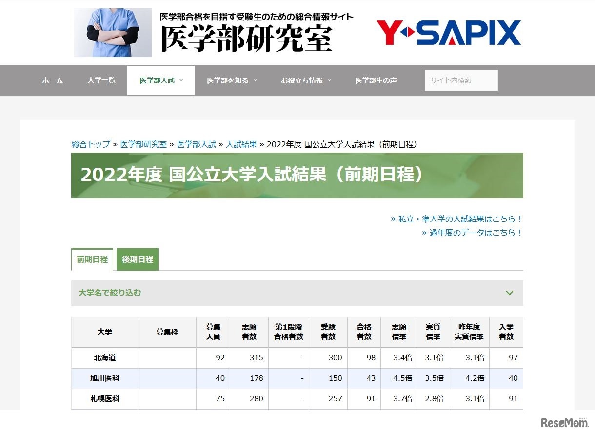 SAPIX YOZEMI GROUPが運営する医学部合格を目指す受験生のための総合情報サイト「医学部研究室」は2022年6月15日、2022年度の国公立大学医学部の入試結果を公表した。実質倍率は、高知大学の地域枠(前期日程)が7.0倍ともっとも高かった。