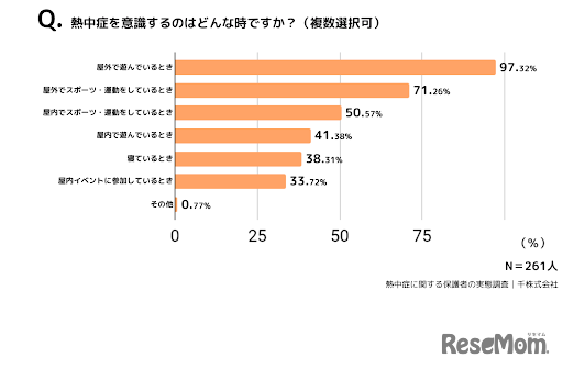 保護者の9割以上は「熱中症は子供の方がなりやすい」ことを知っており、子供に対する熱中症対策として、ほぼ全員が水分補給を行っていることが、総合保育テックサービス「はいチーズ!」を提供する千が2022年6月20日に公表した実態調査から明らかとなった。