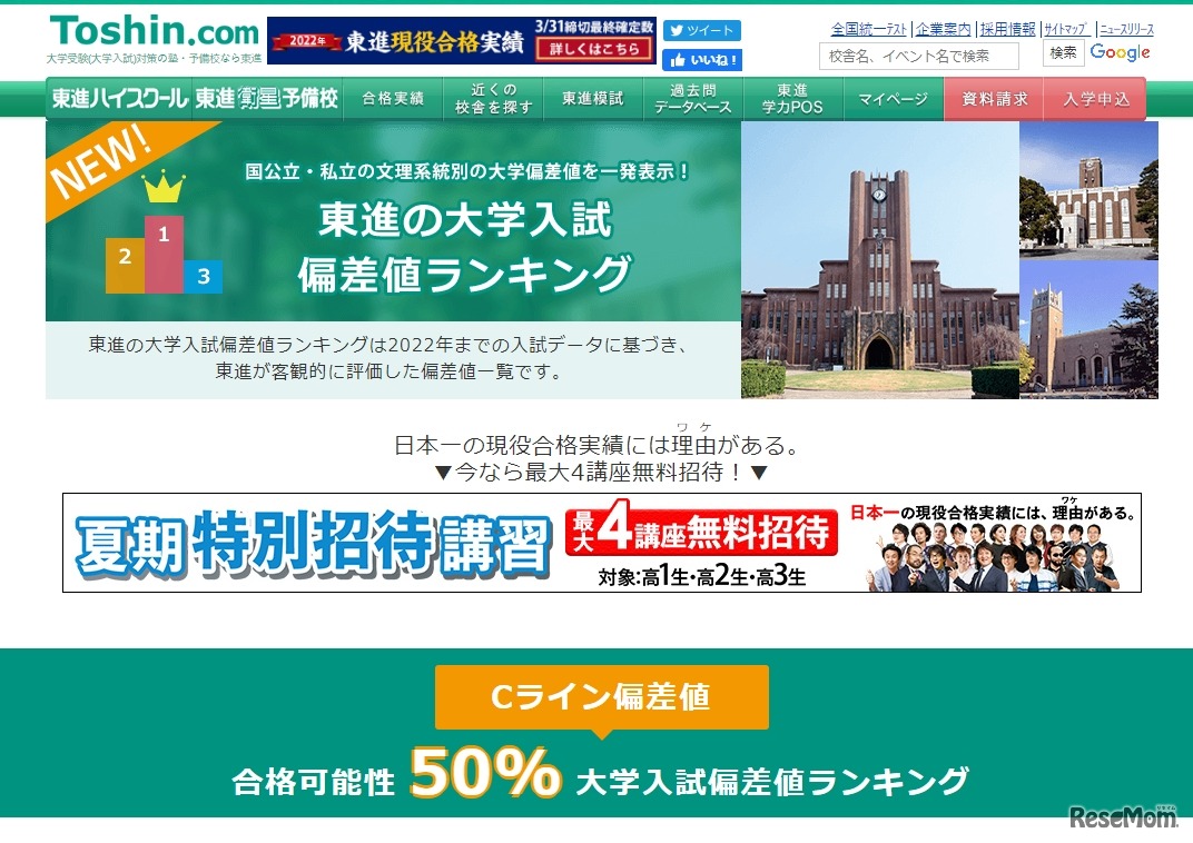 東進のWebサイト「東進ドットコム」は、2026年度入試対応の最…