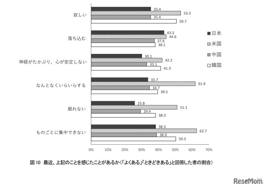 画像出典:国立青少年教育振興機構 最近、上記のことを感じたことがあるか(「よくある」「ときどきある」と回答した者の割合)