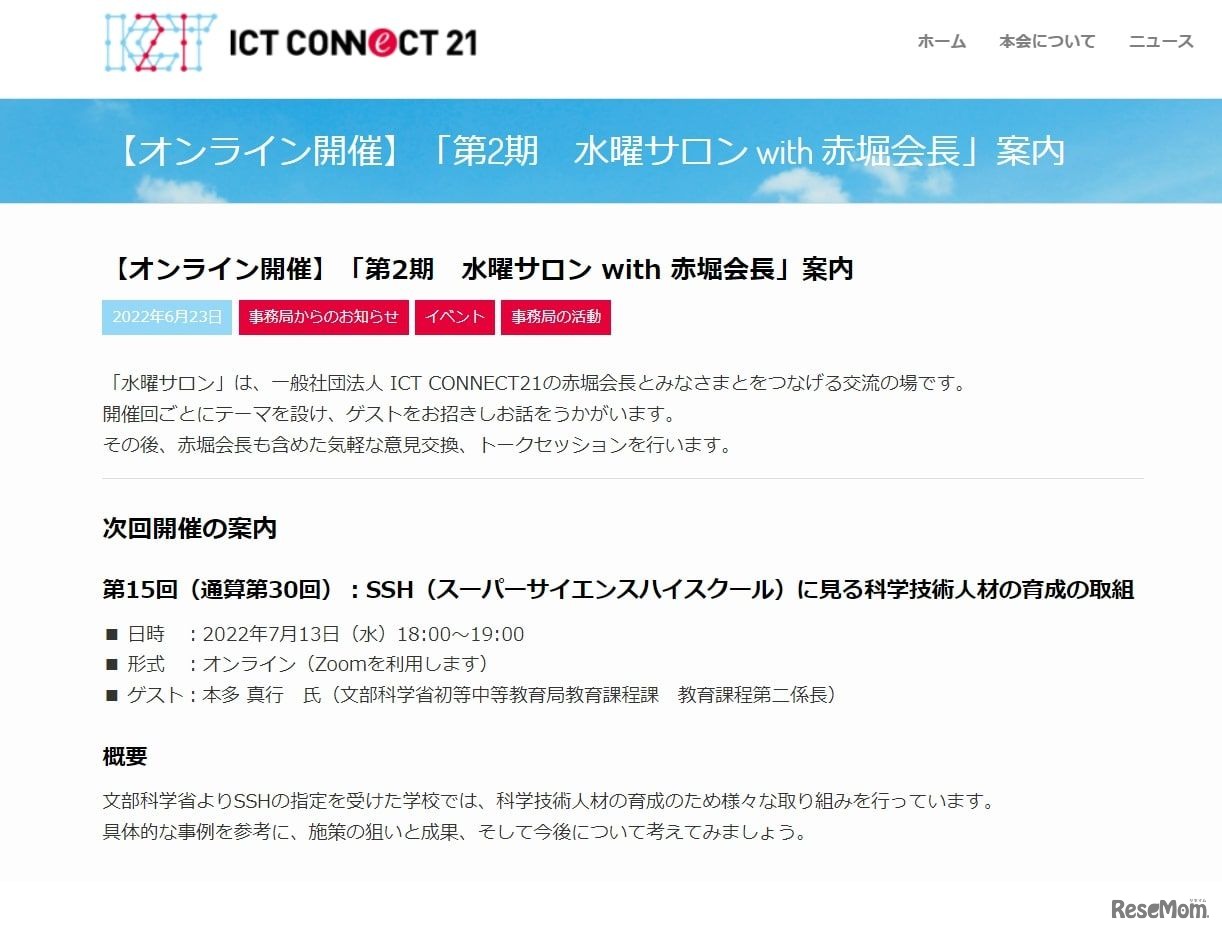 ICT CONNECT21は2022年7月13日、「第2期 水曜サロン with 赤堀会長」にてオンライン交流会「SSH(スーパーサイエンスハイスクール)に見る科学技術人材の育成の取組」を開催。SSHでの事例を参考に、施策の狙いと成果や今後について考える。