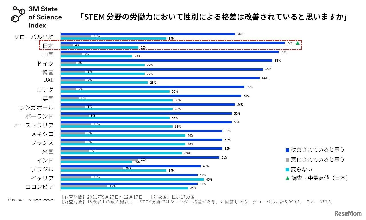 画像出典:スリーエム ジャパン 性別による格差は改善しているか