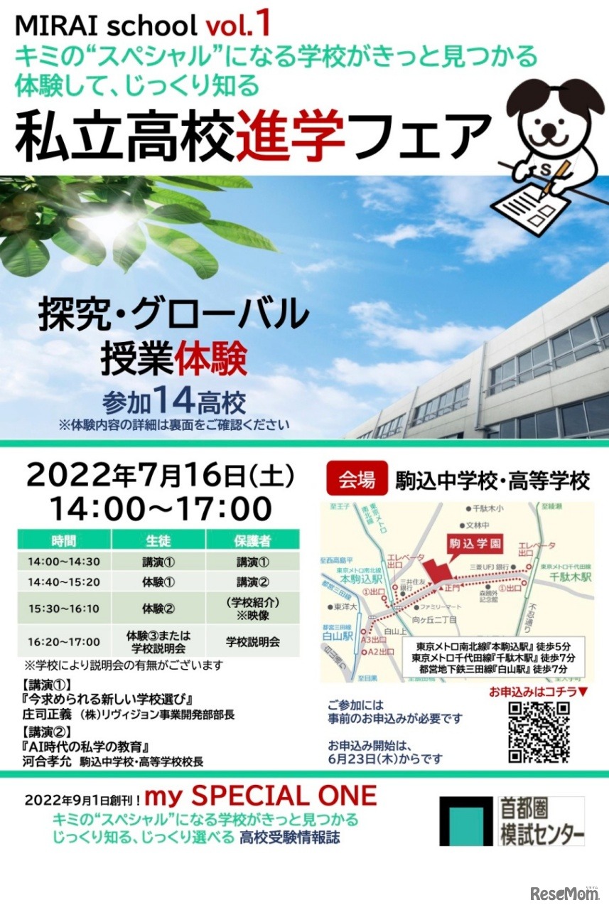 首都圏模試センターは2022年7月16日、私立高校14校が参加し探究・グローバル授業体験を実施するイベント「MIRAI school vol.1 私立高校進学フェア」を開催する。会場は駒込中学校・高等学校。体験授業は定員制。Webサイトにて先着順で申込みを受け付ける。