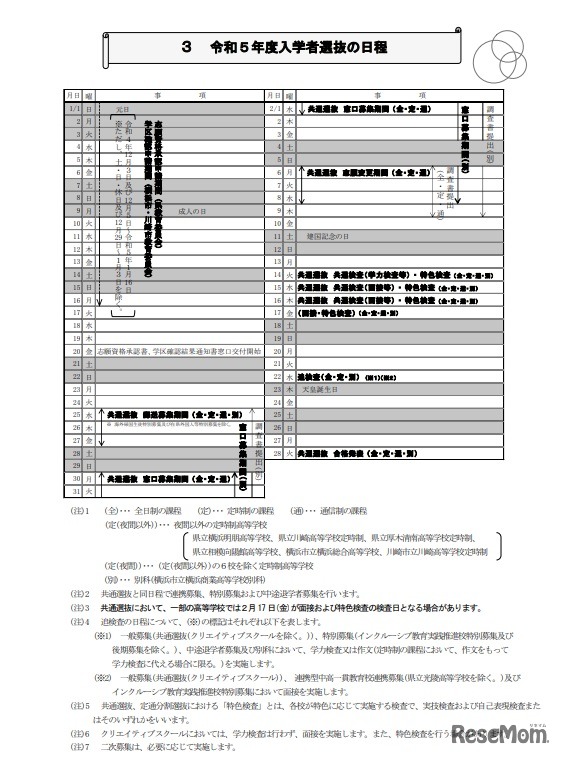 神奈川県教育委員会は2022年7月1日、2023年度(令和5年度)神奈川県公立高等学校入学者選抜の「募集案内」と「実施要領」を公表した。中学3年生と保護者向けの「募集案内」は、7月8日までに県内の国公立中学校等に配付する予定。