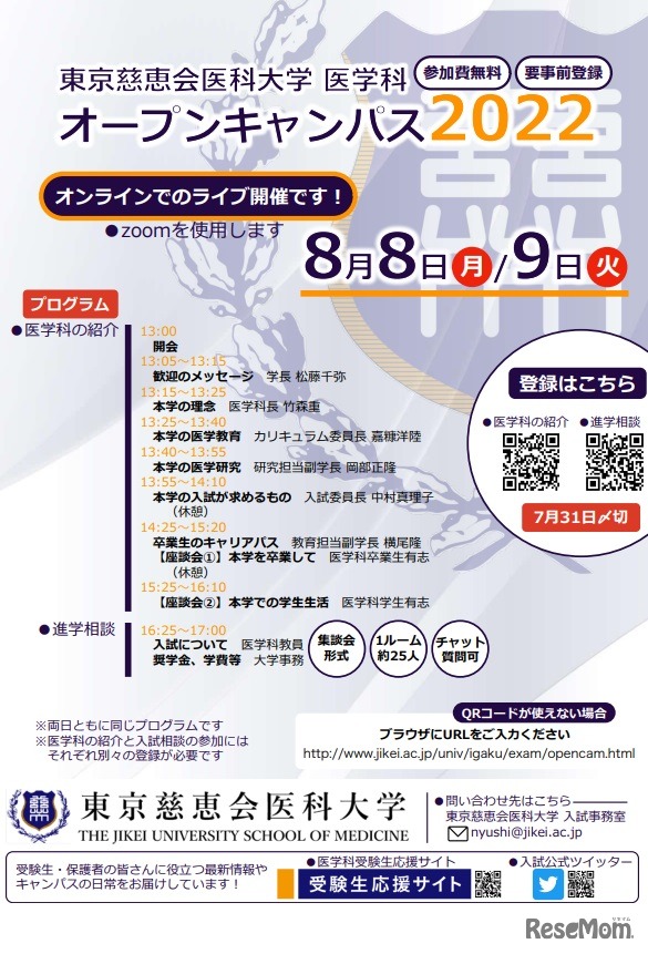 医学部を設置する首都圏私立大学の2022年度オープンキャンパス情報をまとめた。来場型で開催する大学が多く、人数制限なしで開催する大学もある。日程順に首都圏の私立大学医学部のオープンキャンパスを紹介する。