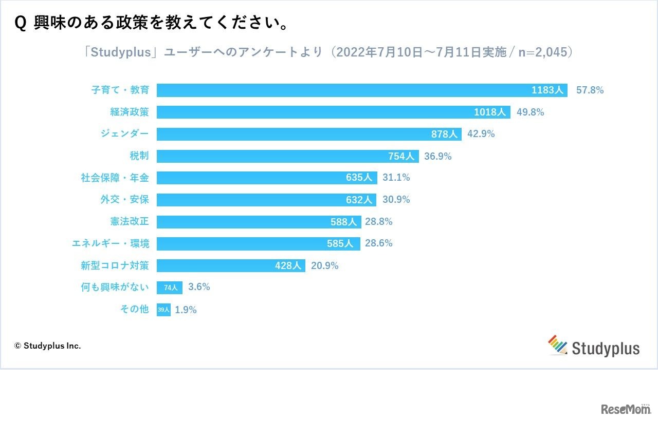 興味のある政策を教えてください。