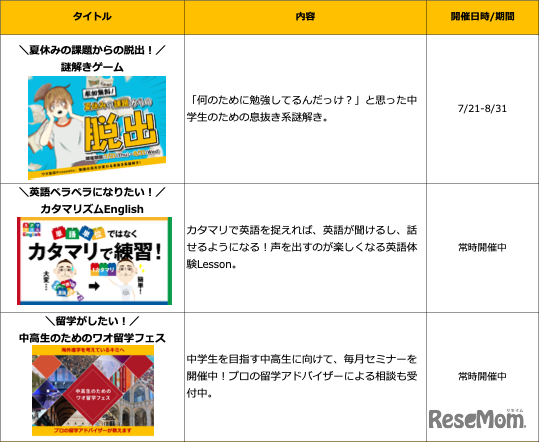 ワオ高等学校は2022年の夏休み期間中に、中高生向け「夏の学育フェス2022」をオンライン開催する。謎解きゲームや、英語・数学の体験レッスン等、自分で学び自分で育つ「学育」をもとにしたプログラムを届ける。参加無料。