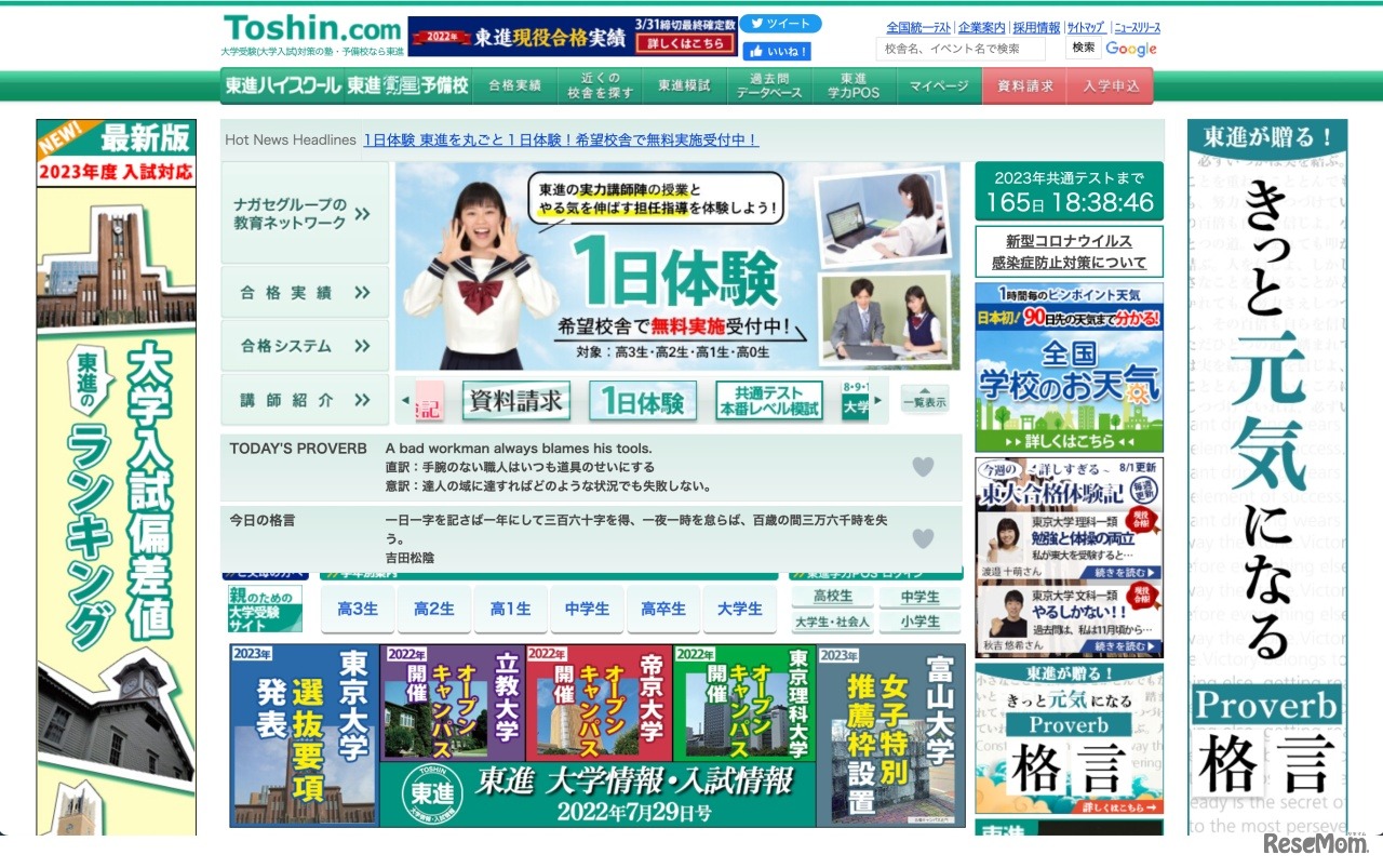 東進ハイスクール・東進衛星予備校を運営するナガセは、大学入学共通テスト(共通テスト)で高得点を取るための解法の修得に特化した新講座「解法レボリューション・共通テスト(理論編)」「解法レボリューション・共通テスト(入門編)」を2022年7月29日に開講した。