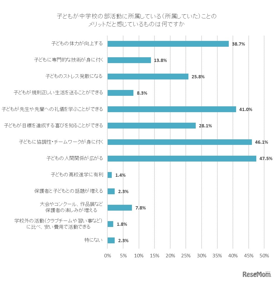 画像出典:栄光ゼミナール調べ 子供が中学校の部活動に所属している(所属していた)ことのメリットだと感じているものは何か(複数回答方式)