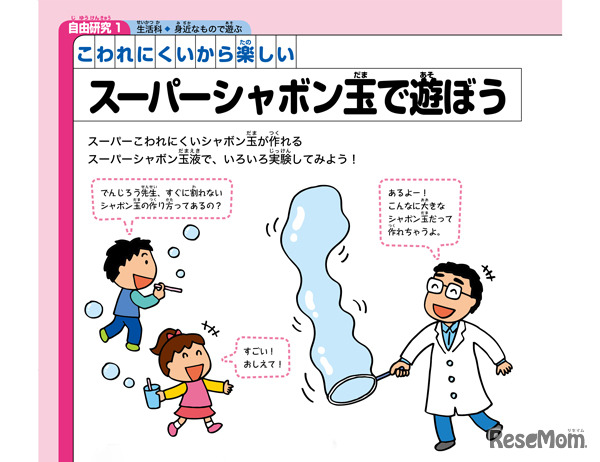 ダイナミックで面白い実験が人気の「でんじろう先生」ことサイエンスプロデューサーの米村でんじろう氏監修「でんじろう先生の学校の理科がぐんぐんわかるおもしろ実験」(主婦と生活社)より、こわれにくくて大きい「スーパーシャボン玉」を作る実験を紹介する。