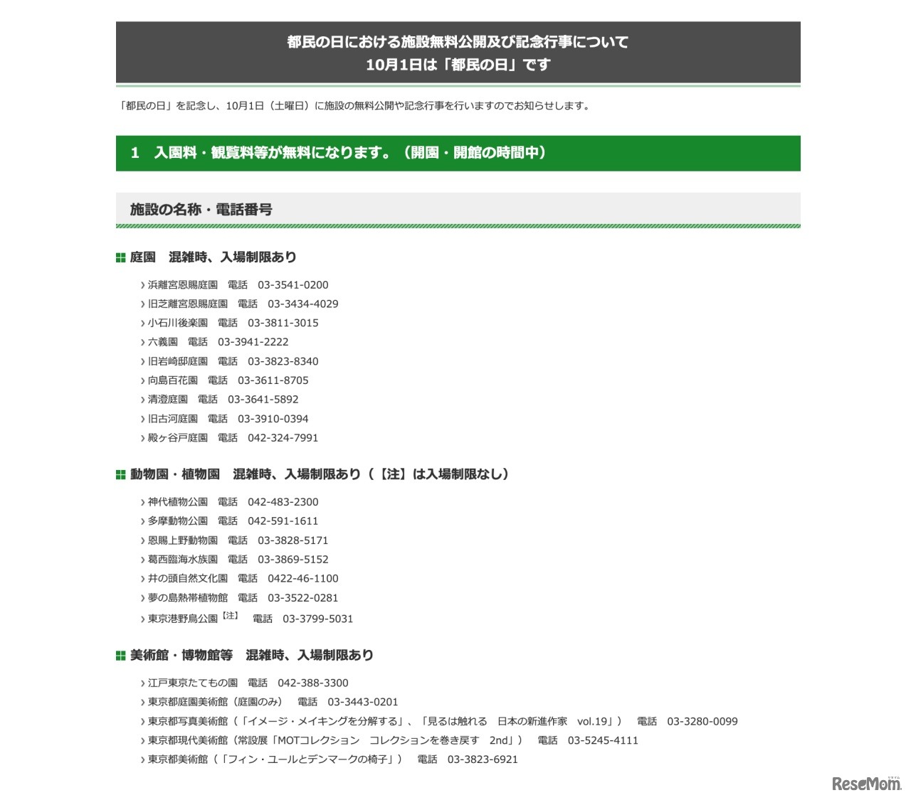 東京都は10月1日の「都民の日」を記念して、2022年10月1日に施設の無料公開や記念行事を実施する。恩賜上野動物園や葛西臨海水族園等22施設の入園料・観覧料・使用料等が無料となる他、3施設で記念行事を行う。