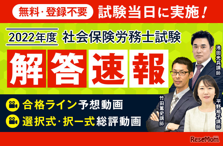 アガルートアカデミーは「令和4年度社会保険労務士試験」の解答速報と合格ライン予想・試験総評の動画を、2022年8月28日の試験当日に無料公開する。会員登録不要。