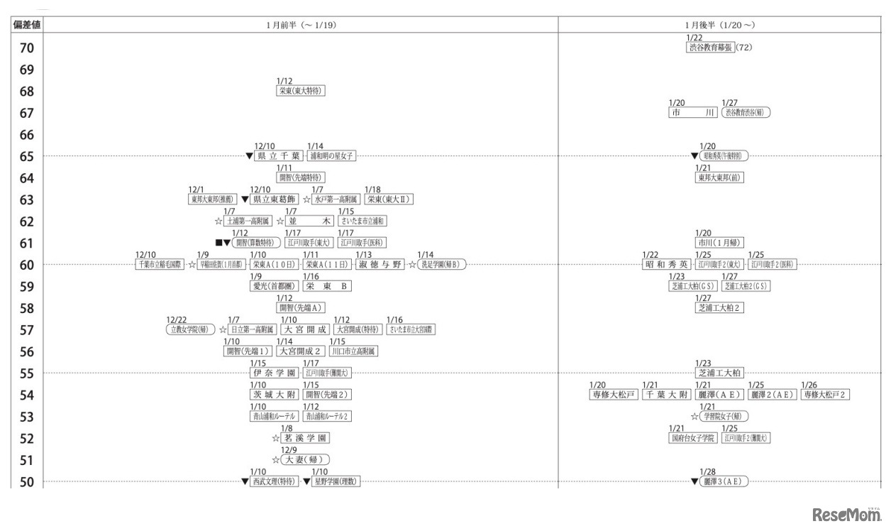 「第2回合不合判定テスト」偏差値一覧(1月前半・後半)【女子】