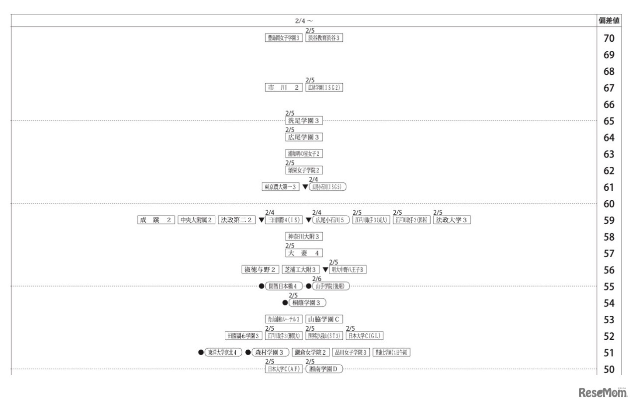四谷大塚は、2022年7月10日に小学6年生対象「第2回合不合判定テスト」を実施。四谷大塚より提供を受けた「第2回合不合判定テスト」の偏差値によると、難関校の合格可能性80%偏差値は、男子が筑波大駒場(73)、開成(71)、女子が桜蔭(71)、豊島岡女子学園(70)等。