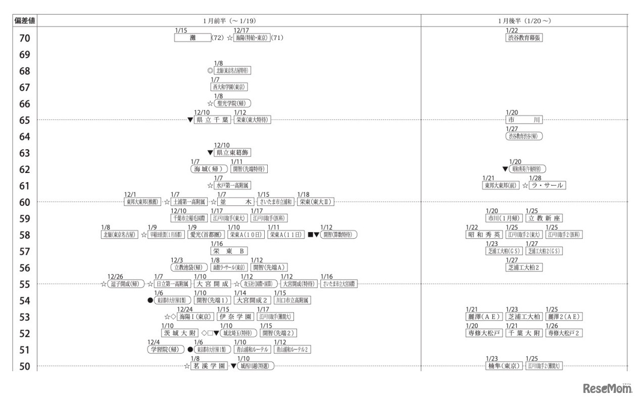「第2回合不合判定テスト」偏差値一覧(1月前半・後半)【男子】