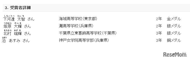 第15回国際地学オリンピックが、2022年8月25日から31日までオンラインで開催された。日本からは4人の高校生が参加し、1人が金メダル(Excellent)、2人が銀メダル(Very Good)、1人が銅メダル(Good)を受賞した。