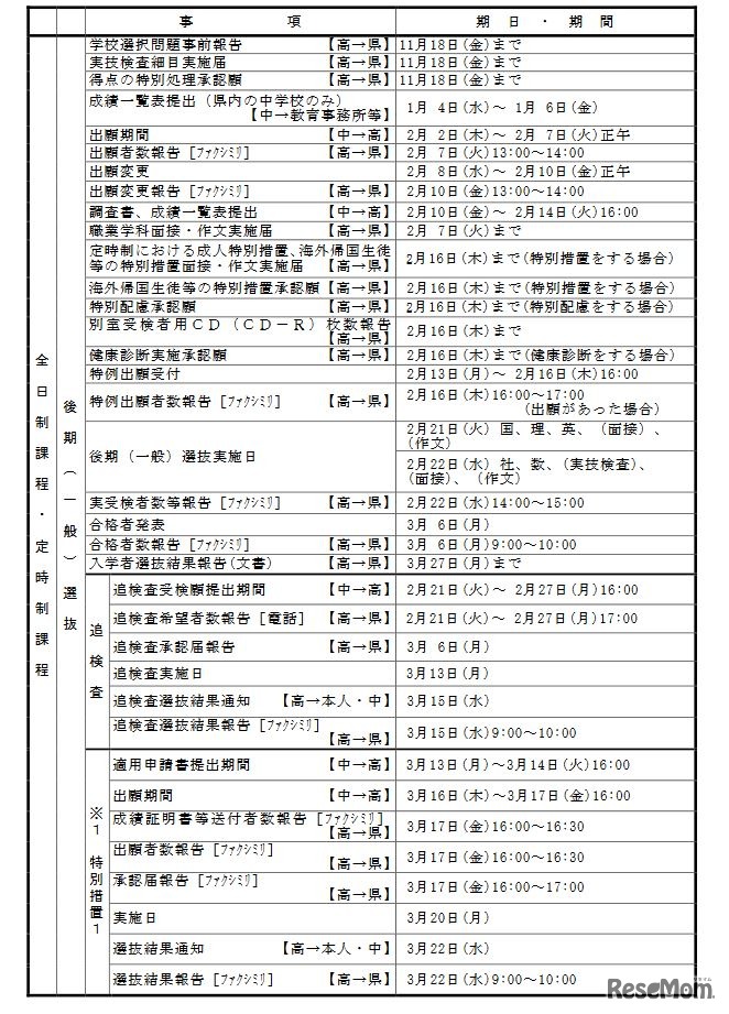 画像出典:熊本県教育員会 2023年度入学者選抜のおもな日程