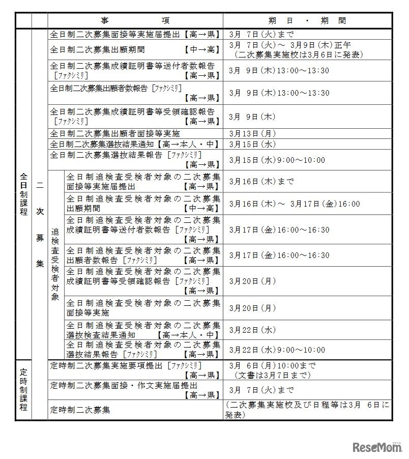画像出典:熊本県教育員会 2023年度入学者選抜のおもな日程