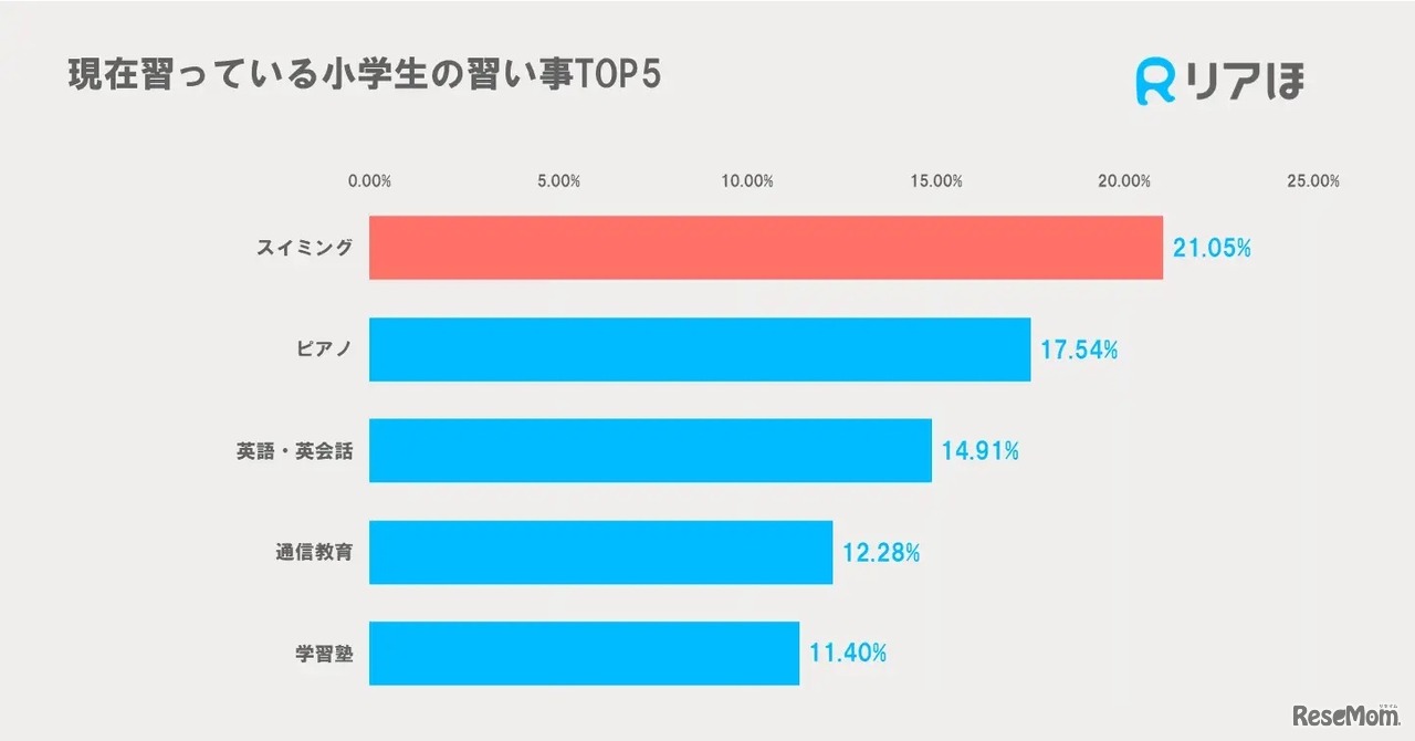 スマホで保険契約ができる正直な保険ガイド「リアほ」を開発・運営するWDCは、2022年8月1日、育児中の30代女性300人を対象に、子供の習い事に関するアンケート調査を実施し、結果を公表した。