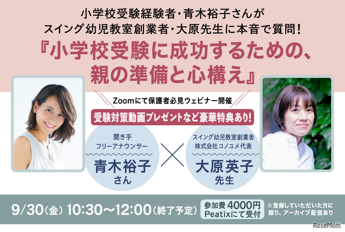 【小学校受験】保護者の準備と心構え、ウェビナー9/30 1枚目の写真・画像
