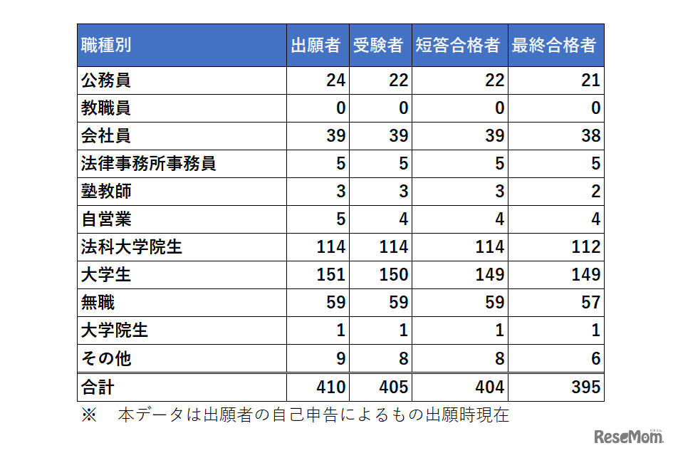 令和4年司法試験受験状況(予備試験合格者)職種別
