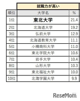 「就職力が高い」大学イメージランキング(北海道・東北)